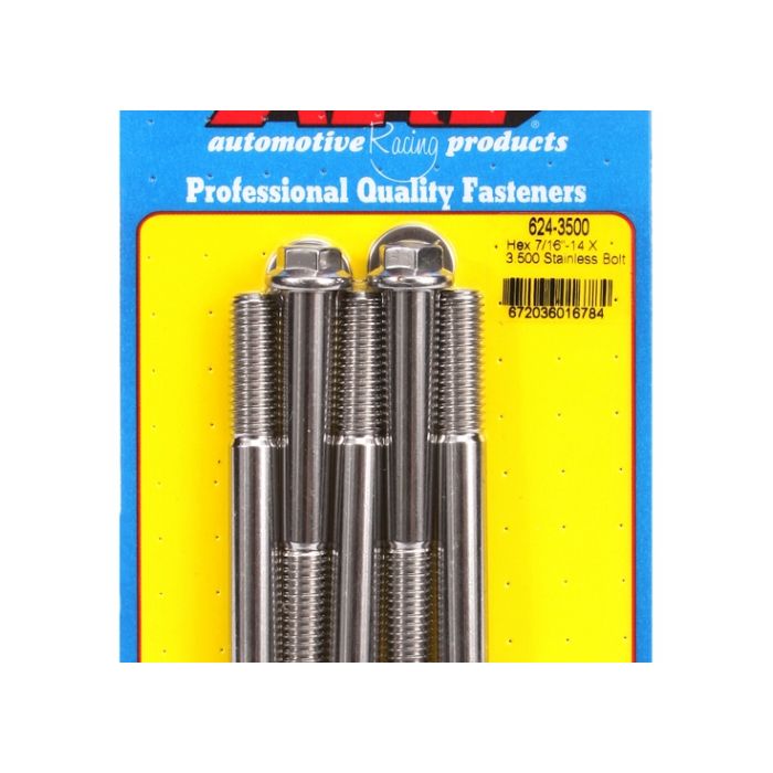 "7/16""-14 X 3.500 hex 1/2 wrenching SS bolts" (5pcs) ARP-624-3500